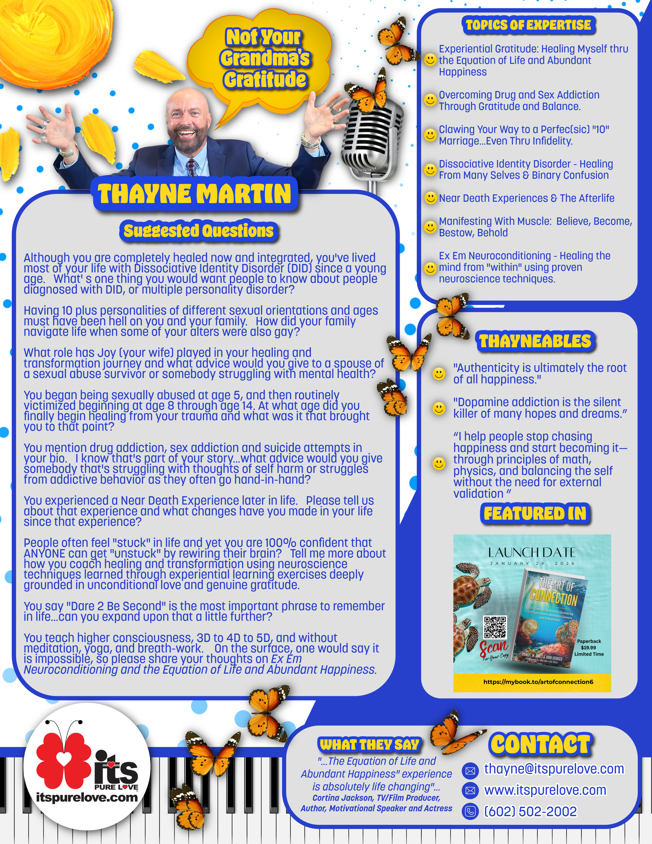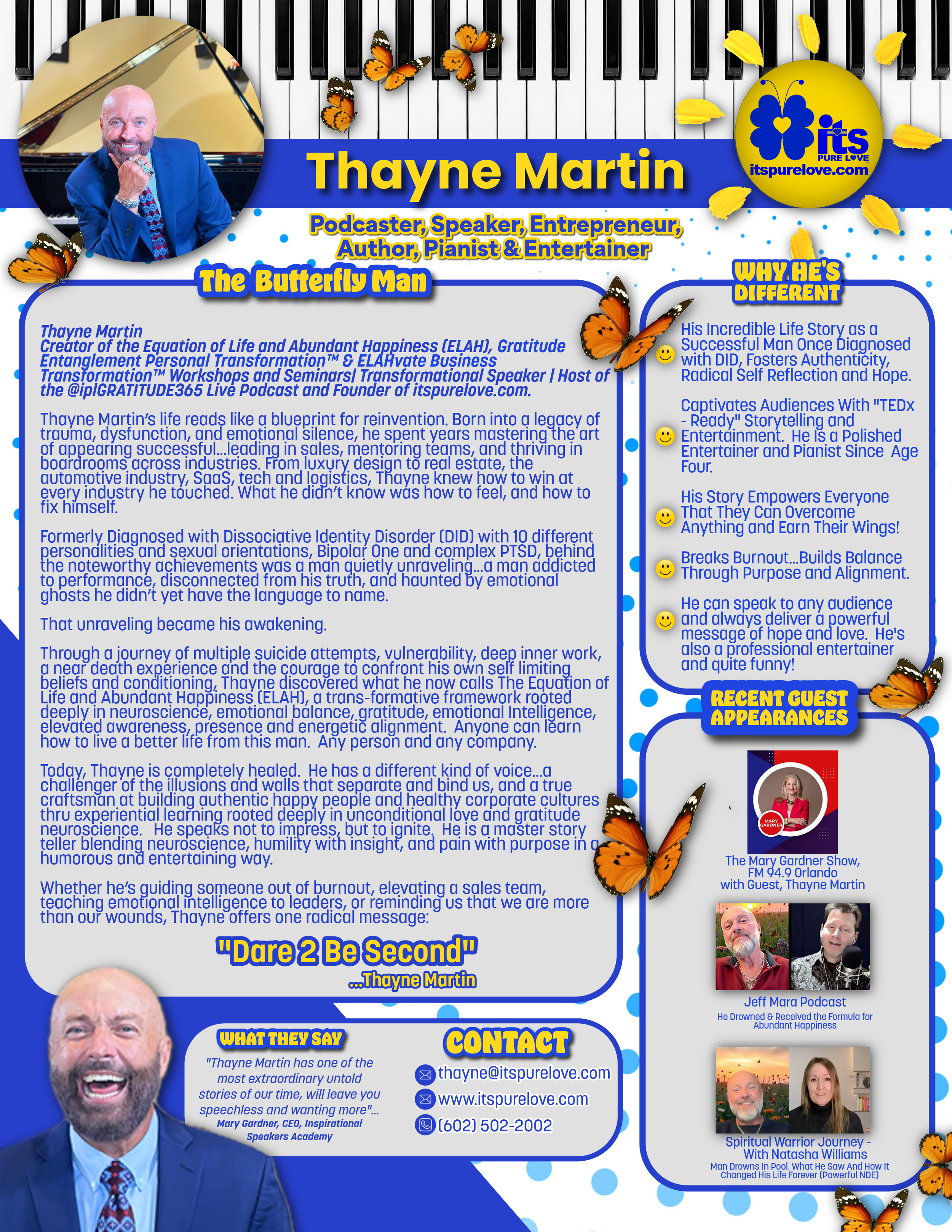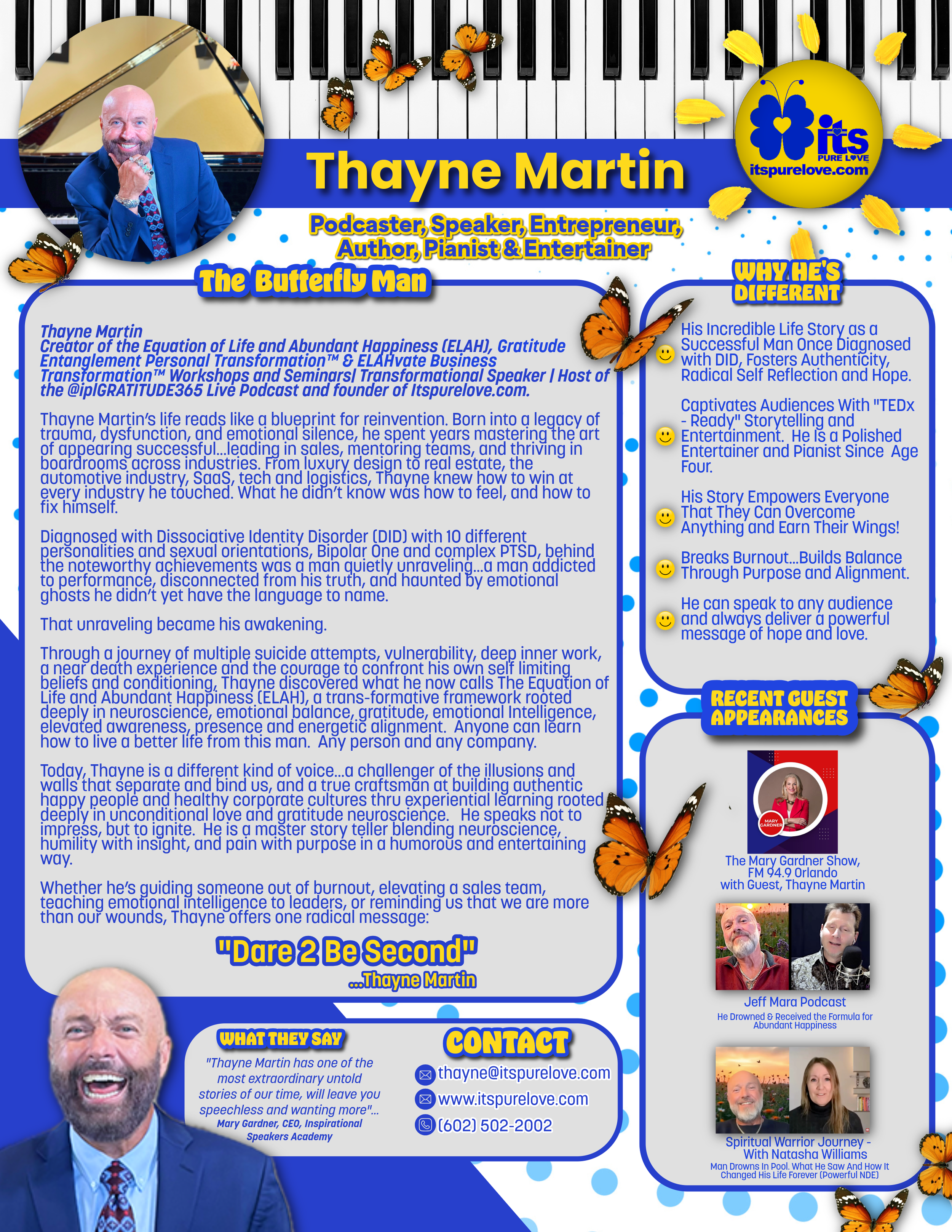 "Thayne Martin has one of the most extraordinary untold stories of our time, he will leave you speechless and wanting more.”