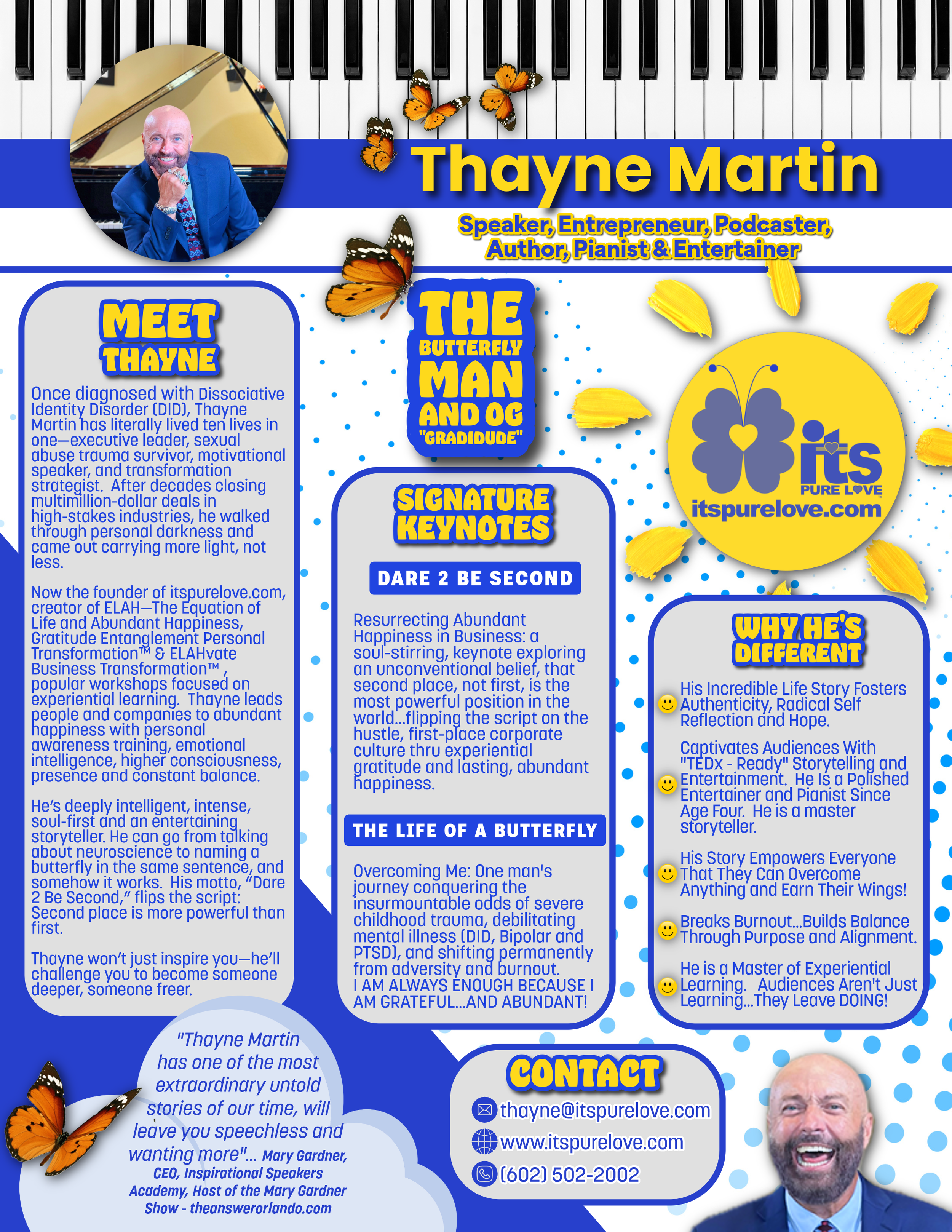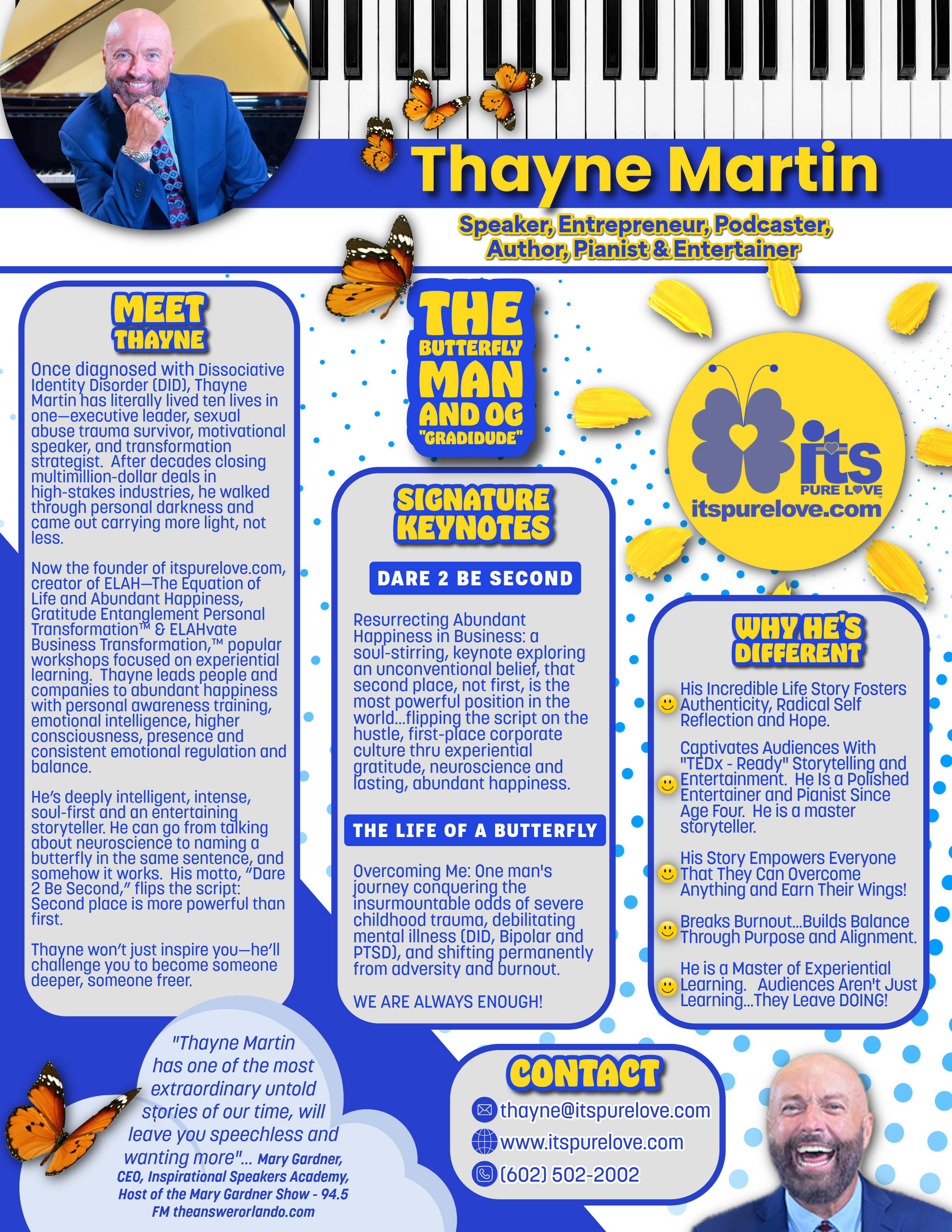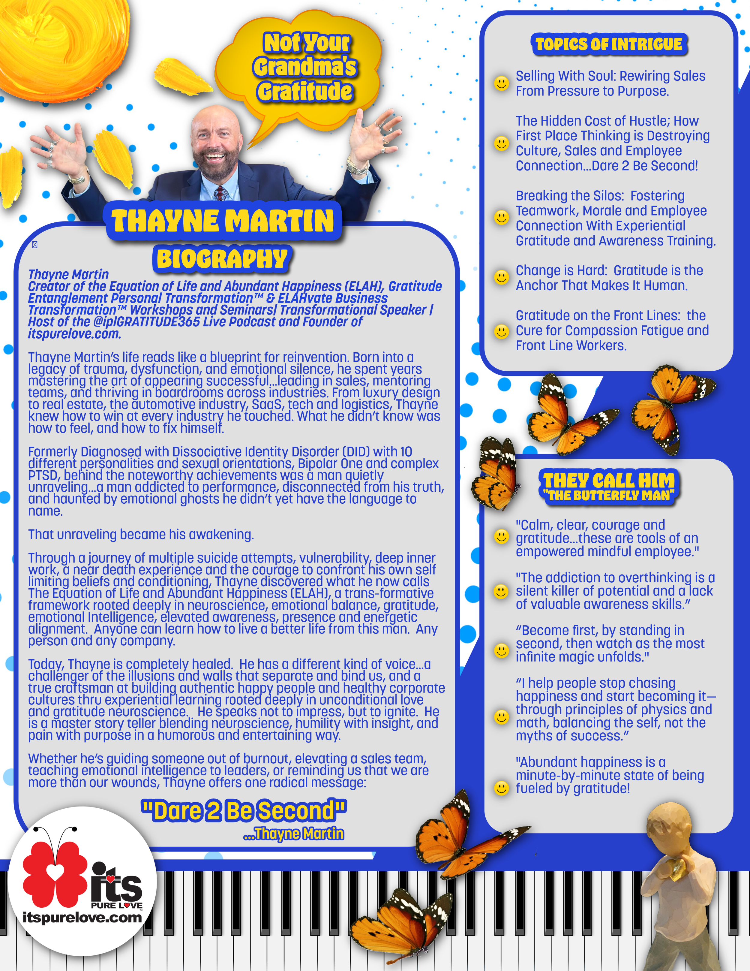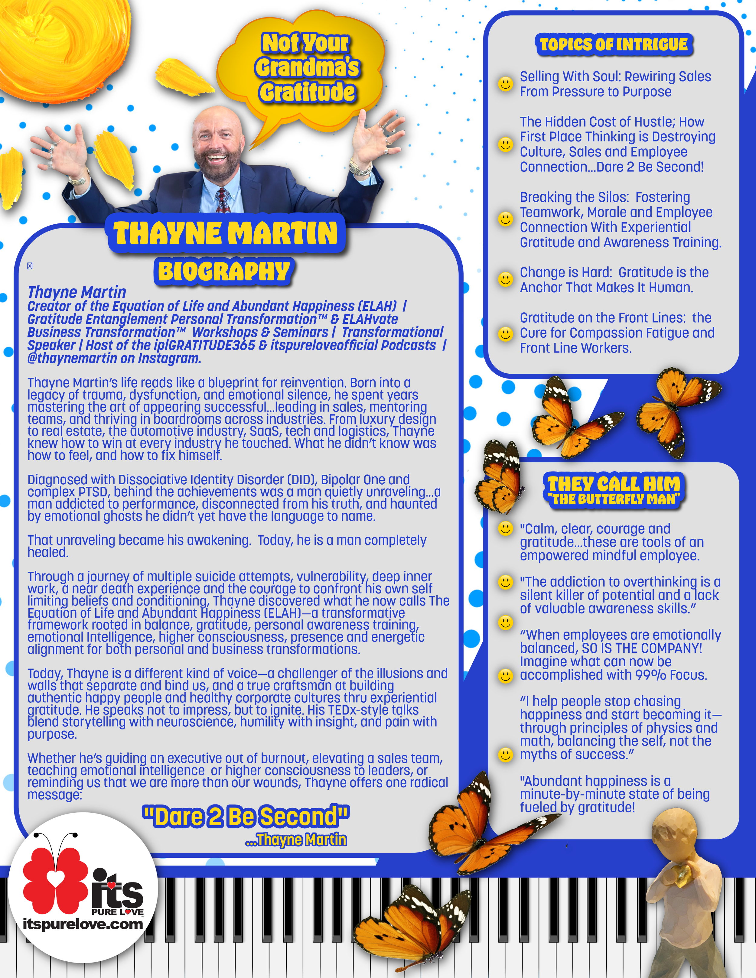 "Thayne Martin has one of the most extraordinary untold stories of our time, he will leave you speechless and wanting more.”